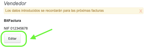1. Emite un nuevo documento y luego presiona el botón de Editar ubicado bajo los datos del Vendedor