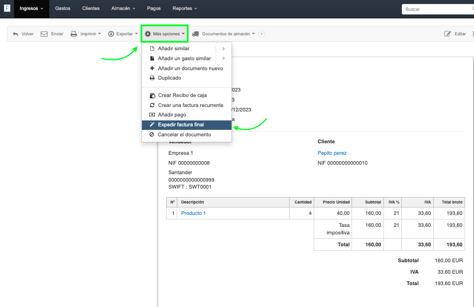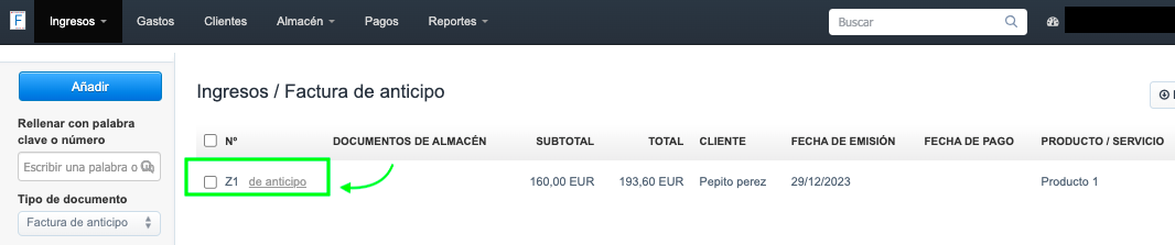 ¿Cómo emitir una factura final desde una factura de anticipo?