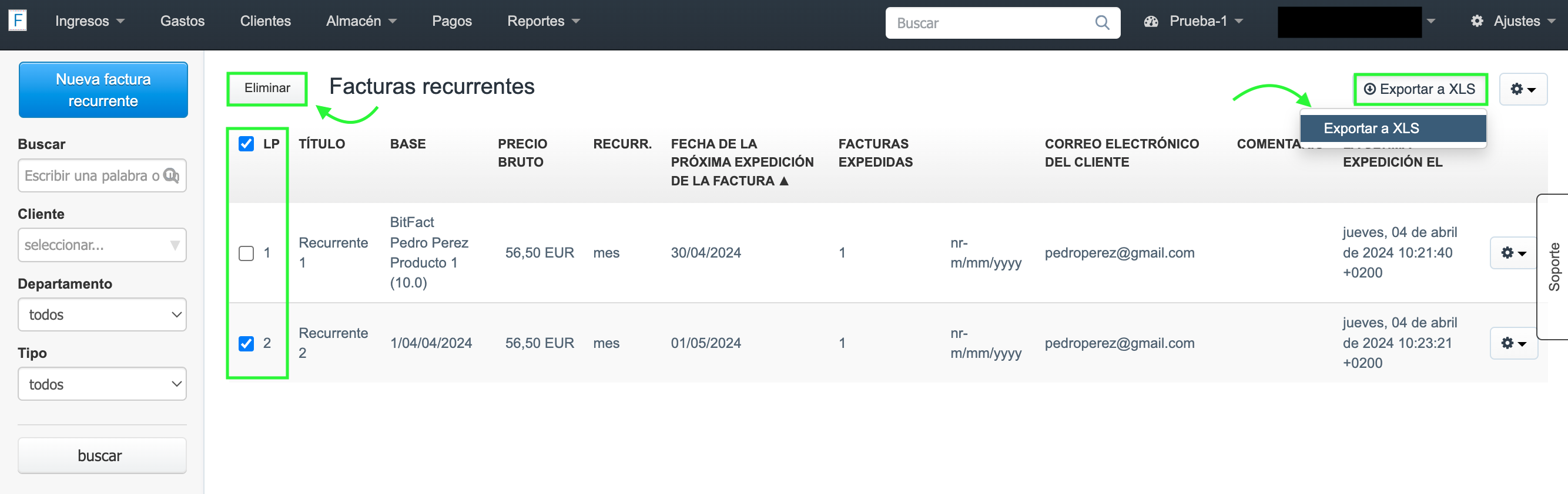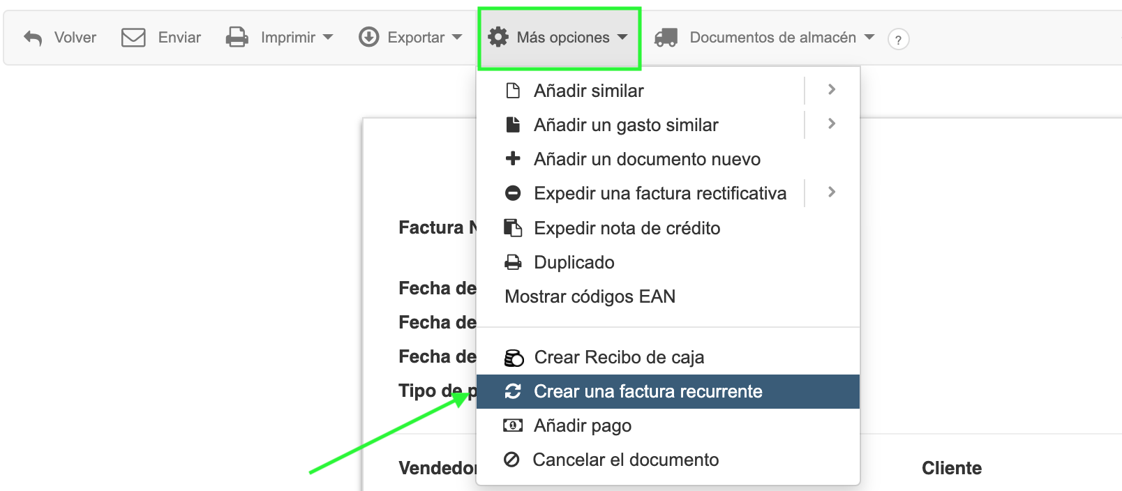 - cómo activar la opción para facturas recurrentes;