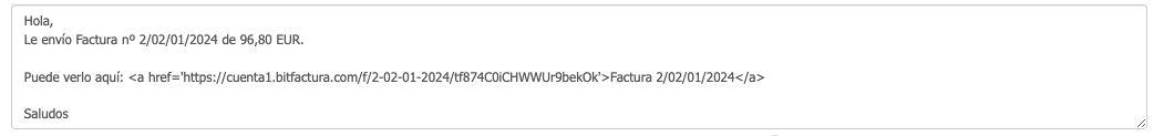 Además de las variables comúnmente utilizadas por los usuarios de BitFactura, también puedes hacer uso de una amplia variedad de variables más detalladas. Todo depende de la información relevante que desees incluir en el mensaje enviado.