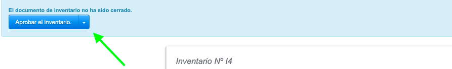 El botón 'Aprobar inventario' también está disponible desde el panel de edición del documento