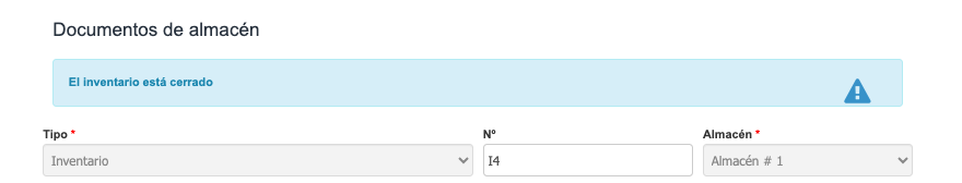 Después de hacer clic en el botón Listo, el inventario está ahora cerrado. Si deseas editar el documento y aplicar cambios, el programa te mostrará el mensaje El inventario está cerrado y bloqueará la posibilidad de editar la cantidad de productos