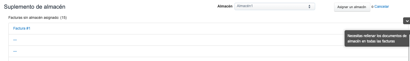 En el momento de generar el inventario, el programa le informará que no todas las facturas están asignadas a un almacén.