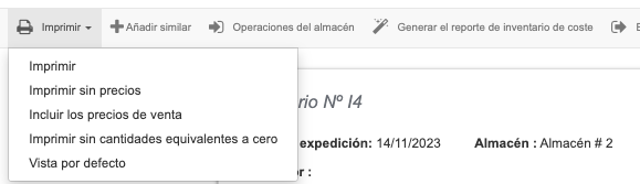 Puedes imprimir el documento de inventario con los precios de compra y los precios de venta. También es posible ocultar los precios.