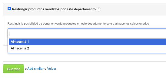 - Selecciona la casilla Restringir productos vendidos por este departamento
