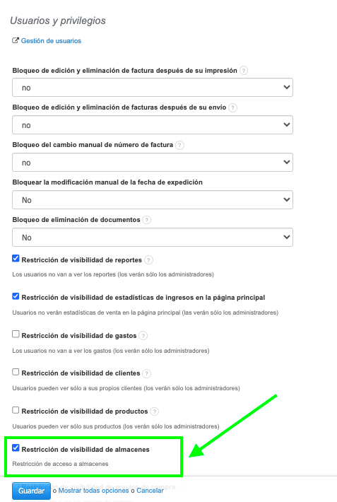 Para restringir la visibilidad de los almacenes: