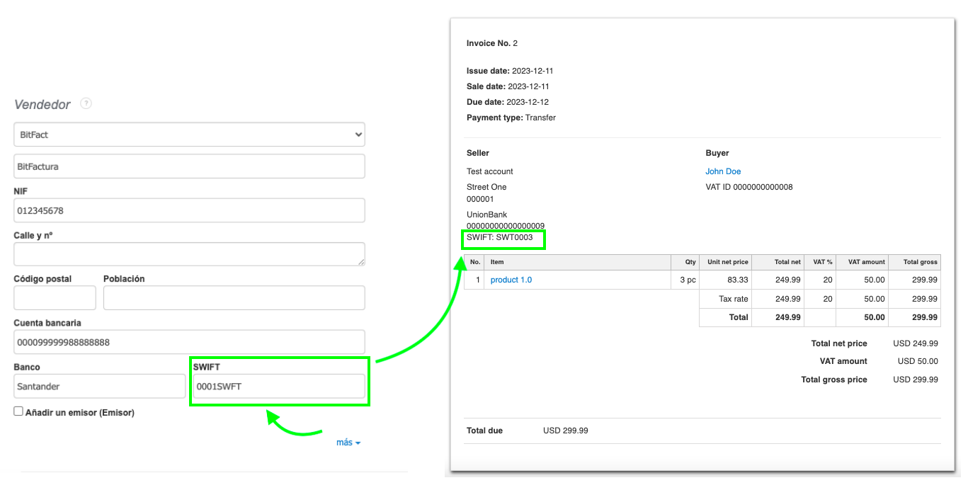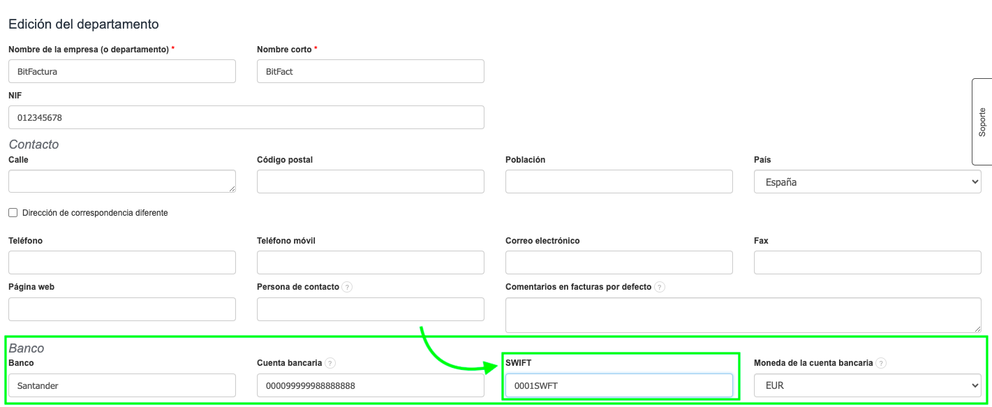 Ahora, el código SWIFT aparecerá en la información del vendedor en los documentos creados.