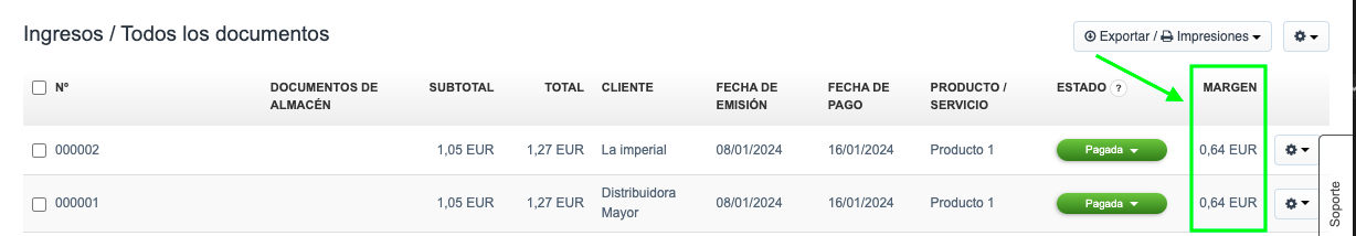 BitFactura ofrece la posibilidad de adaptar la apariencia de la lista de facturas de ingresos para mostrar el margen obtenido de una factura específica. Esta función está disponible para los usuarios del Plan Estándar.