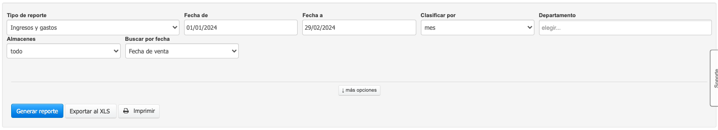 Para generar un reporte, debes seleccionar su tipo, especificar tus parámetros y marcar la opción Generar reporte.