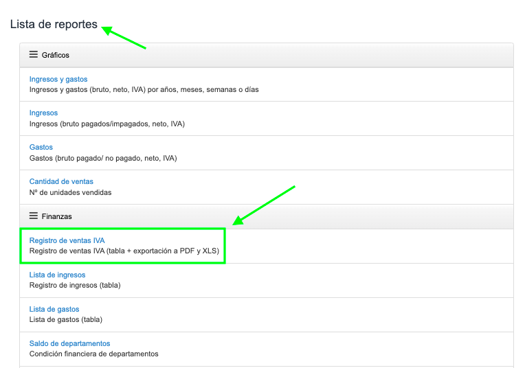 Las ventas en nuestro programa se pueden registrar utilizando el reporte Registro de ventas de IVA en Reportes > Lista de reportes, en la sección Finanzas.