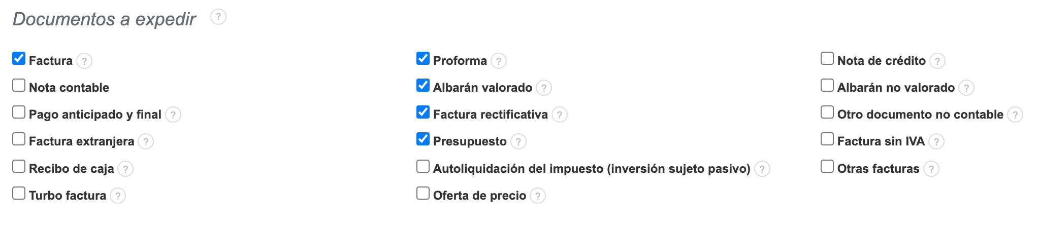 3. En BitFactura, puedes emitir muchos tipos de documentos, pero para mantener orden en tu cuenta, te sugerimos habilitar aquellos que utilizas a diario. Para ver una lista completa de documentos que puedes utilizar, ve a Ajustes > Ajustes de cuenta > Tu cuenta. Luego, verás la sección Documentos a expedir.