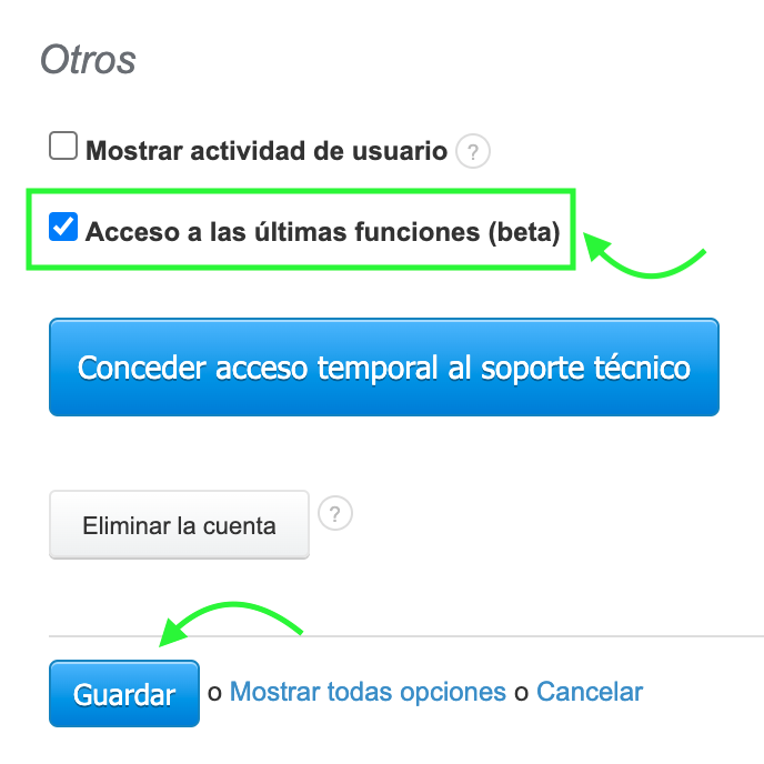 ¿Dónde activar el acceso a las últimas funciones (beta)?