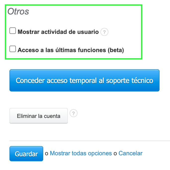 Activar esta opción te permite tener una verdadera influencia en las funciones disponibles en el sistema antes de que sean publicadas a todos los usuarios del programa, gracias a la posibilidad de probarlas. Tu participación y comentarios serán invaluables para preparar las opciones más útiles para los usuarios.