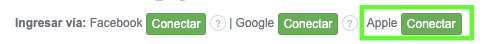 5. Haz clic en Conectar junto a la opción de Apple, y luego inicia sesión en tu cuenta.