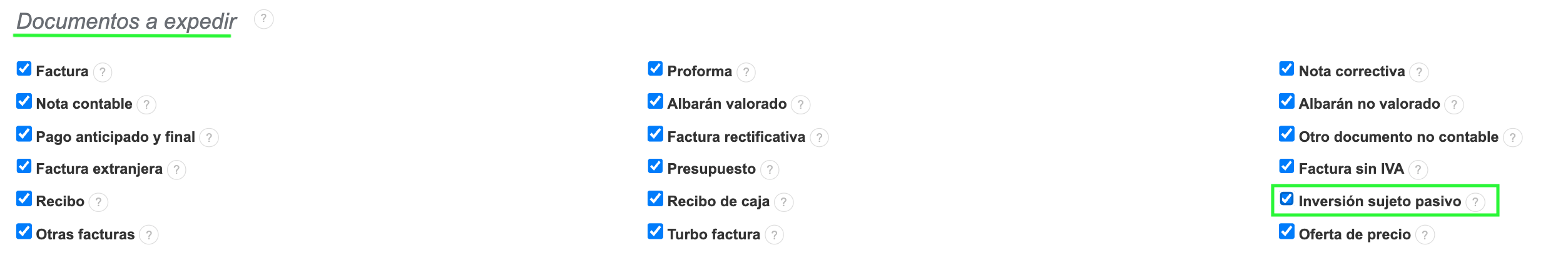 Para expedir facturas bajo el procedimiento de inversión sujeto pasivo, debes activarlo como un tipo de documento dentro de los ajustes de tu cuenta.