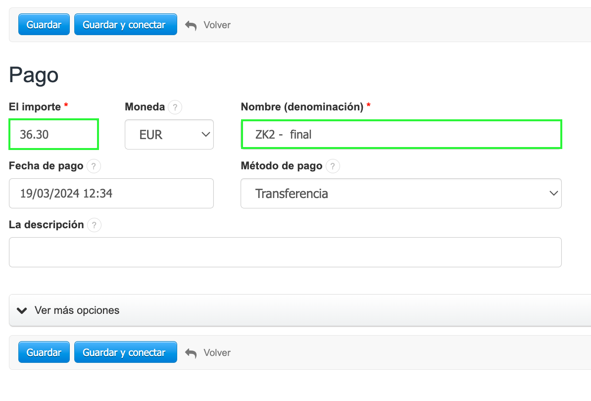 Si al usar la opción Guardar, el sistema no encuentra un documento para conectar el pago, podrás hacerlo manualmente.