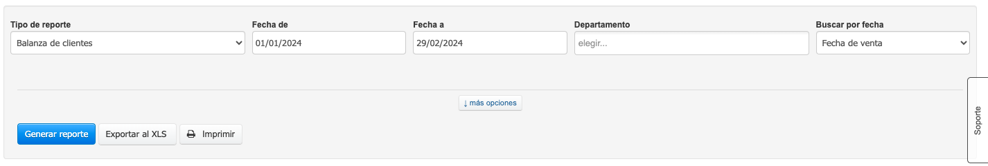 Para generar el reporte, necesitas seleccionar su tipo, especificar los parámetros y elegir la opción Generar reporte. En la pestaña Lista de reportes, hay una extensa base de datos de reportes divididos en secciones temáticas relacionadas con varios aspectos del sistema, como ventas, gastos, almacenes, productos, clientes y otros.
