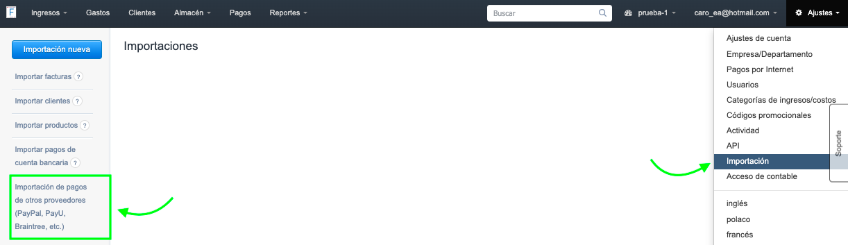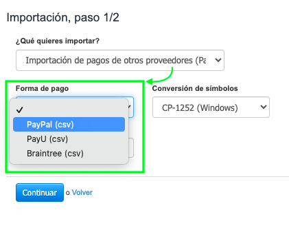 ¿Cómo importar pagos de otros proveedores (PayPal, PayU, Braintree)?