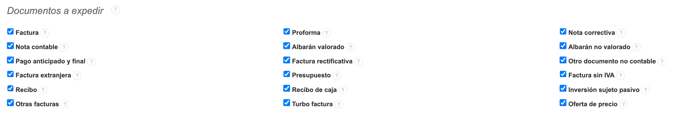 Para activar los documentos que necesitas ve a Ajustes > Ajustes de cuenta y marca las casillas al lado de estos documentos.
