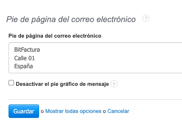 En el caso del pie de página del correo electrónico, para el parámetro {{footer}}, tienes la opción de personalizarlo.