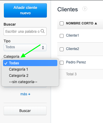 También, puedes usar el filtro según la categoría seleccionada en la lista de clientes.
