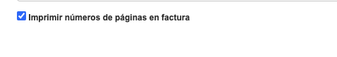 Si quieres que tus facturas contengan numeración en el pie de página de la factura ve a Ajustes > Ajustes de cuenta > Ajustes de impresión > Imprimir números de páginas en factura