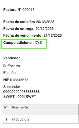 Para añadir un campo adicional en la factura: