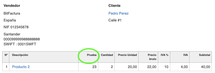 Añadir un campo adicional en la factura