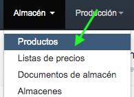 - Ve a la pestaña Almacén > Productos,