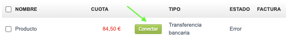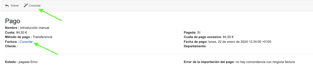 Esto se puede hacer desde la lista de pagos utilizando el botón verde Conectar.