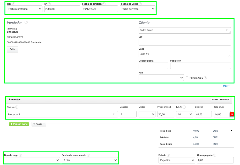 ¡Nota! El documento Proforma es un documento universal y, como tal, se pueden emitir varias facturas con IVA a partir de un solo documento Proforma para un cliente específico. También, verifica: ¿Cómo insertar el número de la factura proforma en la factura?