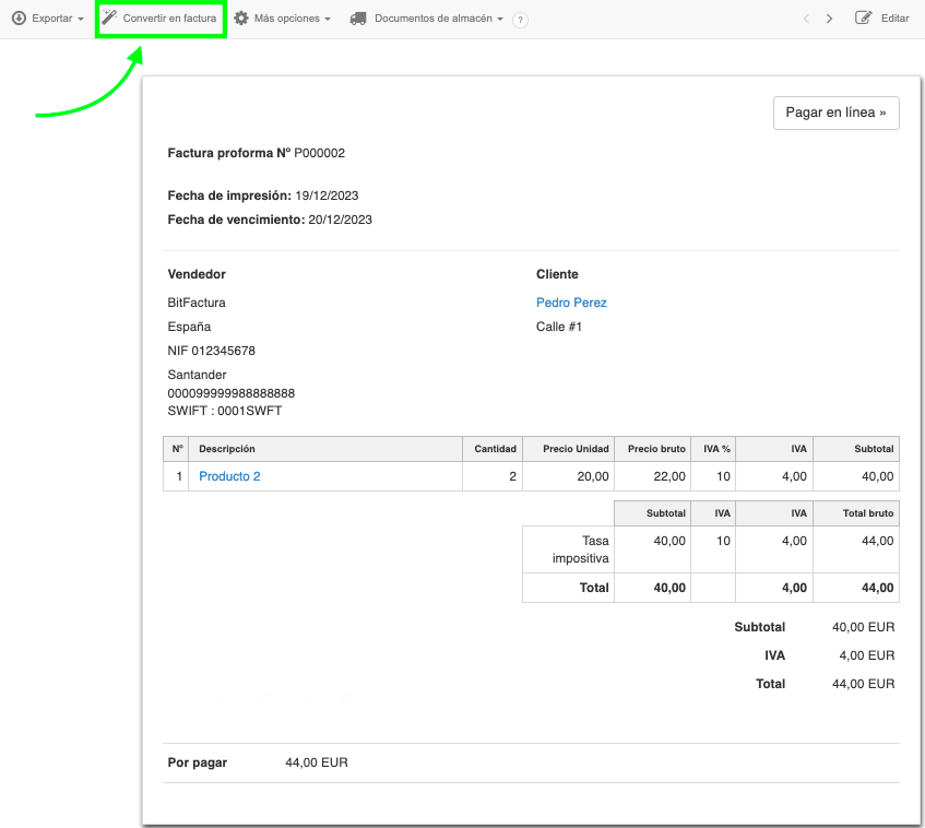 ¿Cómo emitir una factura con IVA a partir de una proforma?