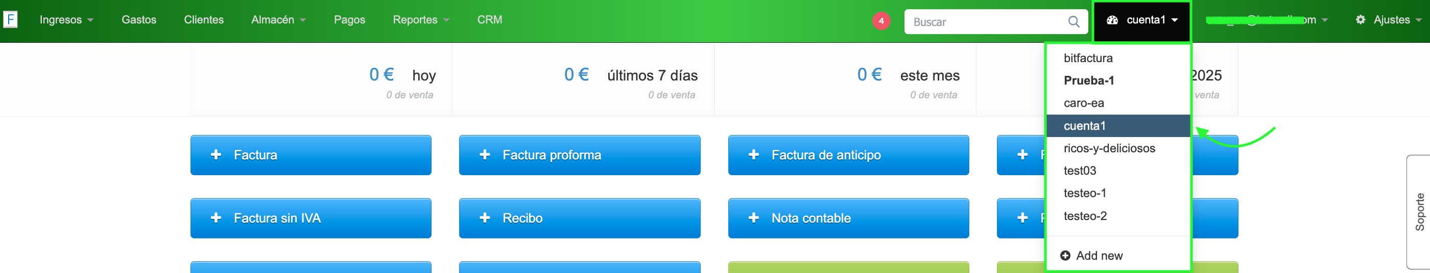 Para añadir correctamente una nueva empresa utilizando la opción de múltiples empresas dentro de una cuenta, ve a: