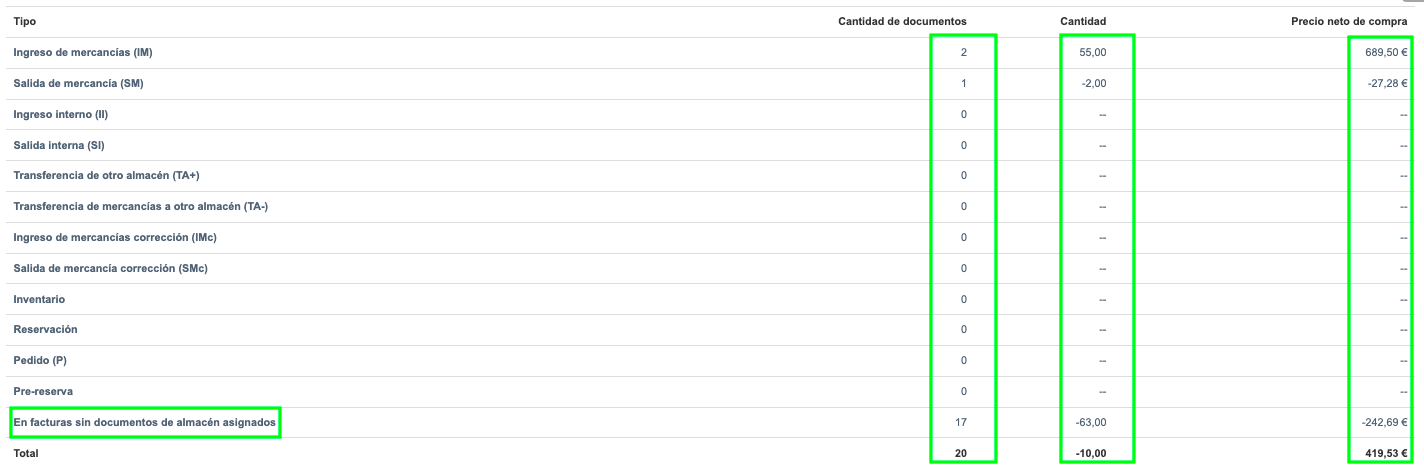 Una situación análoga se puede observar para otros documentos de almacén en este reporte.