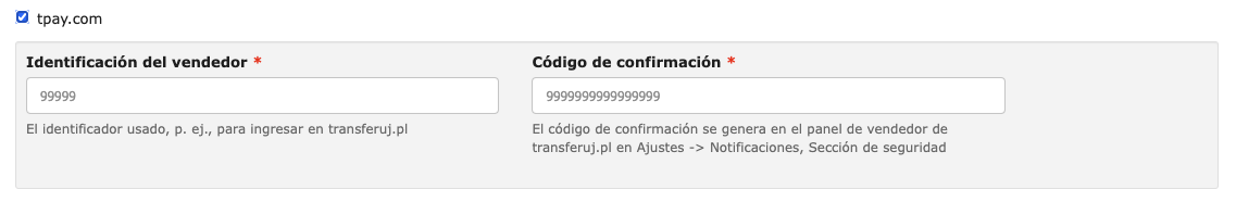- Rellena los campos designados con los datos que encuentres en el panel administrativo de tPay.